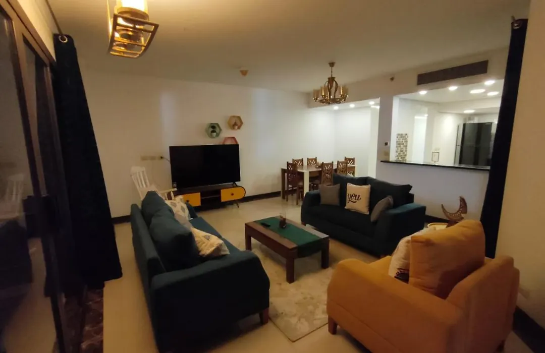 Steps Homes apartment includes a living room and a fully equipped kitchen with air conditioning for utmost comfort.